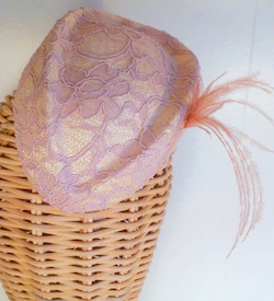 NUDE Descripción: Este tocado esta forrado con encaje de color rosa nude y decorado en el mismo tono con plumas de avetruz. Muy fino.