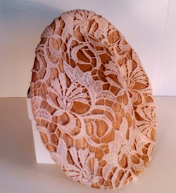 VINTAGE Descripción: Base forrada con sinamay seda y guipur teñido a mano, ésto le da un toque muy elegante con aire vintage.